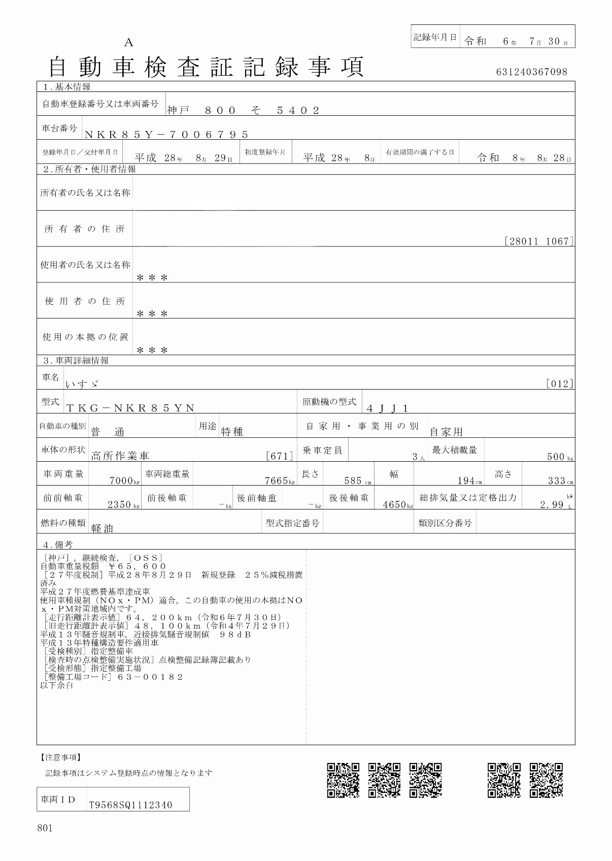 15M高所作業車 エルフ平成28年式7万2千キロ